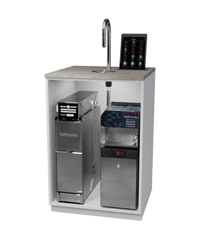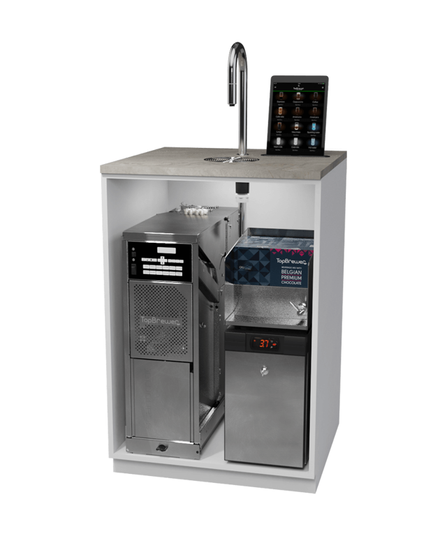 The TopBrewer is the world's first under-counter coffee machine, giving you complete freedom to design a clutter-free, minimal space that is optimised for merchandising and upselling. Easy to specify and designed to fit seamlessly into a standard 600mm x 600mm cupboard.