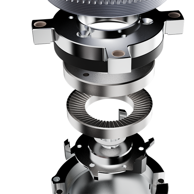 For whatever type of coffee, the new grinder ensures that every cup of coffee is crafted with optimal grind size and uniformity, delivering an unparalleled taste experience. A linear rod guide-rail system makes the Z-axis movement effortlessly accessible, while the XY movement is entirely constrained. The design ensures a high precision between the moving and stationary burr.