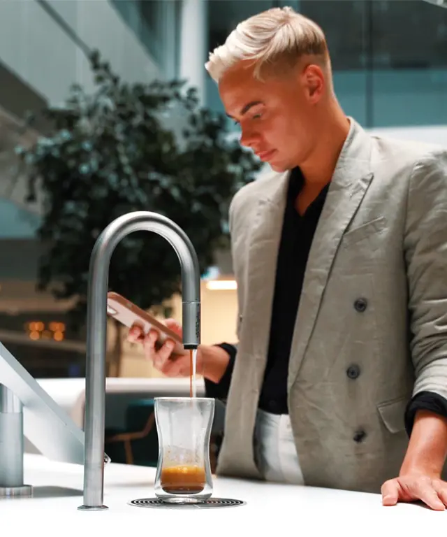 (Aros Kapital) Scanomat’s TopBrewer coffee machine fits in seamlessly in the beautiful office interior at Aros Kapital’s Gothenburg HQ, and employees can enjoy a personalised beverage experience with the smart coffee solution.