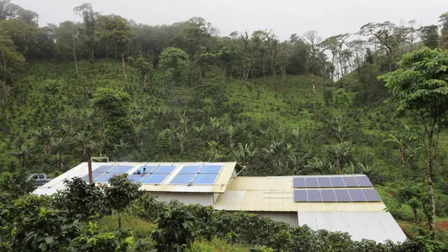Dette er et billede fra Finca Jesper i Nicaragua. Siden 2018 har vi arbejdet i Nicaragua for at fremme bæredygtighed og forbedre kaffeproduktionen. Vores projekter startede med CO2-neutrale vandpumper og solcelledrevet kaffebehandling, hvilket reducerede afhængigheden af diesel og mindskede miljøpåvirkningen.