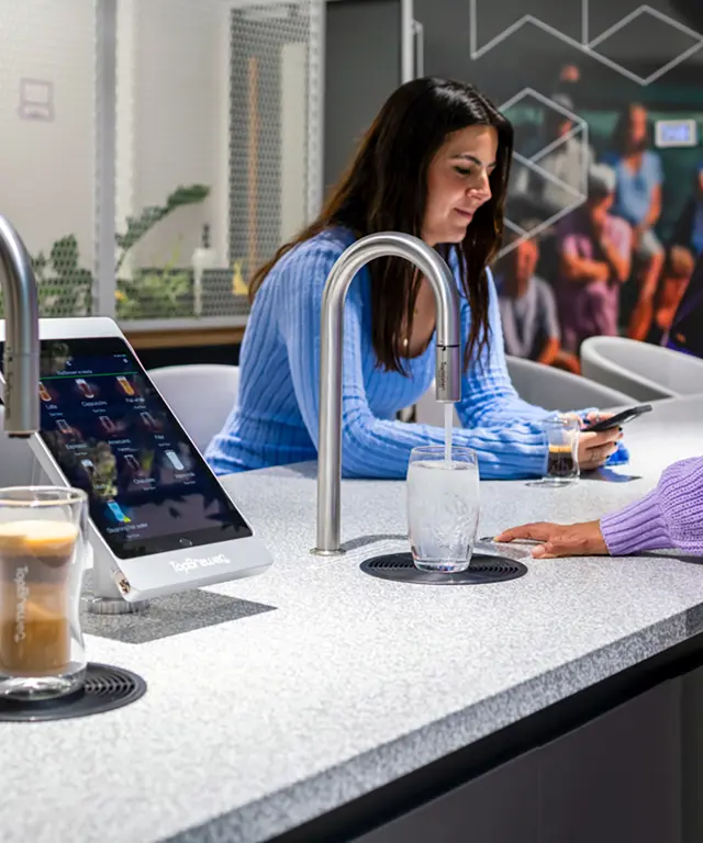 (Keep Your Employees Hydrated with TopBrewer) Discover the benefits of a streamlined commercial beverage solution - with TopBrewer you have one elegant tap for all hot and chilled drinks.