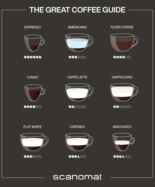 (Know your coffee types | The Great Coffee Guide) Are you unsure about what distinguishes a café latte from a cappuccino? Learn that and much more in our comprehensive guide to the most common types of coffee.