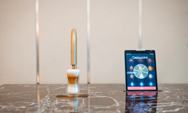 TopBrewer’s sleek under-counter design and fully automated functionality combines minimalist elegance with unmatched efficiency, making it the perfect fit for The Leela. Gold faucets add a touch of luxury, while custom branding elements seamlessly integrate into the hotel’s aesthetic.