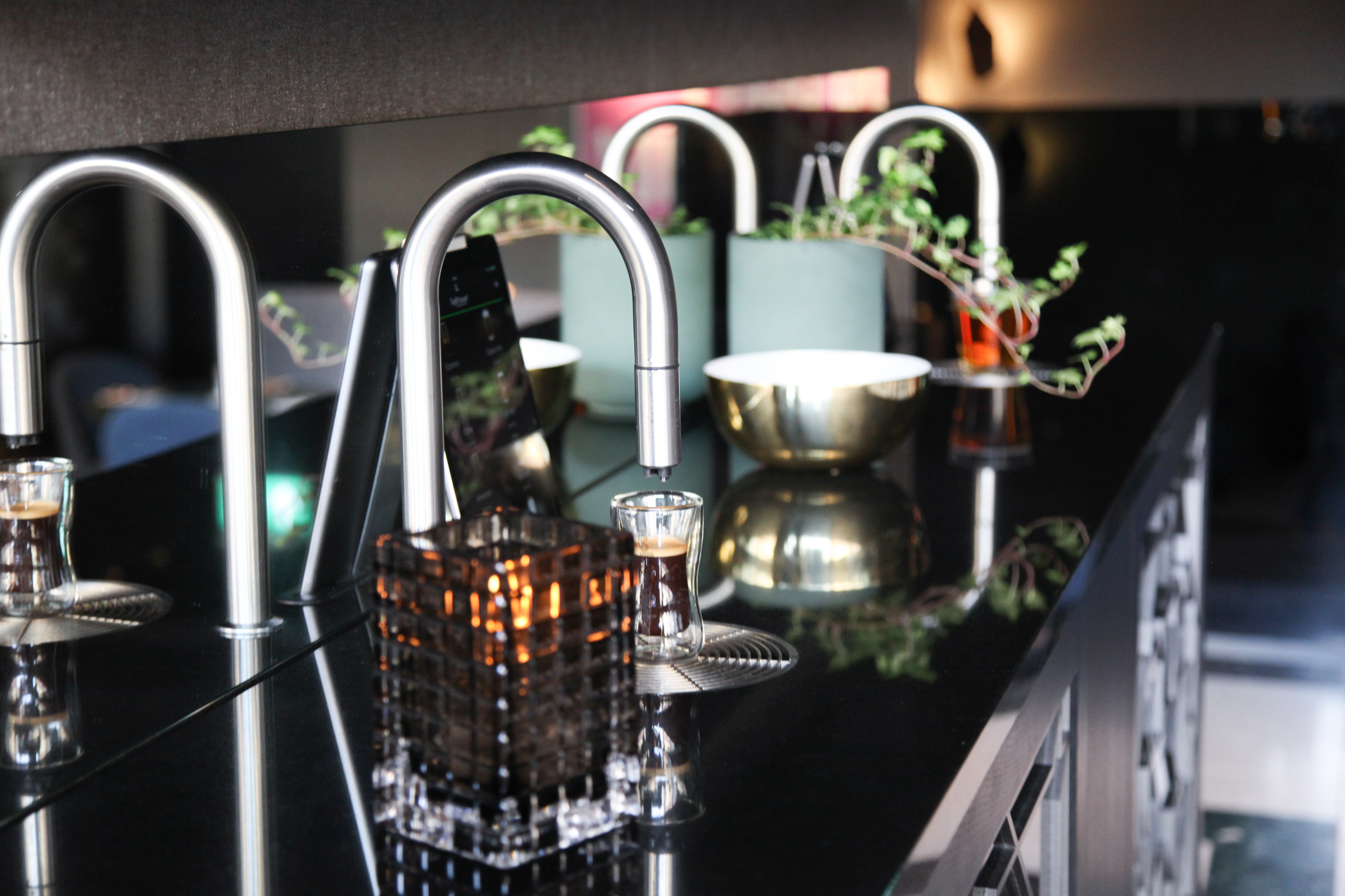 Your favourite espresso, milk-based coffee, hot water for tea, chilled and sparkling water, juices and hot chocolate in one elegant tap controlled by an iPad or your own smartphone or smartwatch.
