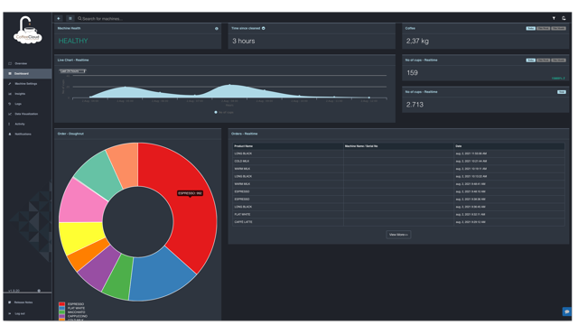 CoffeeCloud to najbardziej zaawansowany na świecie system zarządzania ekspresami do kawy w chmurze - z najnowocześniejszymi danymi w czasie rzeczywistym dla Twojej organizacji.