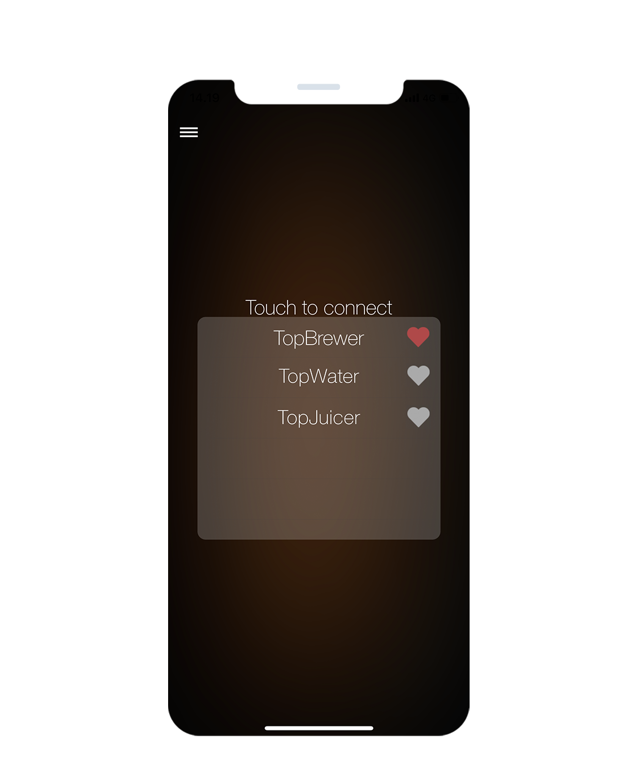 Snabb återanslutning | Med TopBrewer-appen kan du ansluta till alla våra kaffe-, vatten- och juicemaskiner. Anslut snabbt din favoritmaskin igen genom att lägga till hjärtat eller ansluta till en ny maskin.