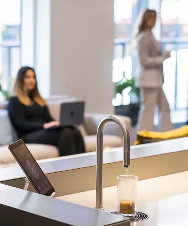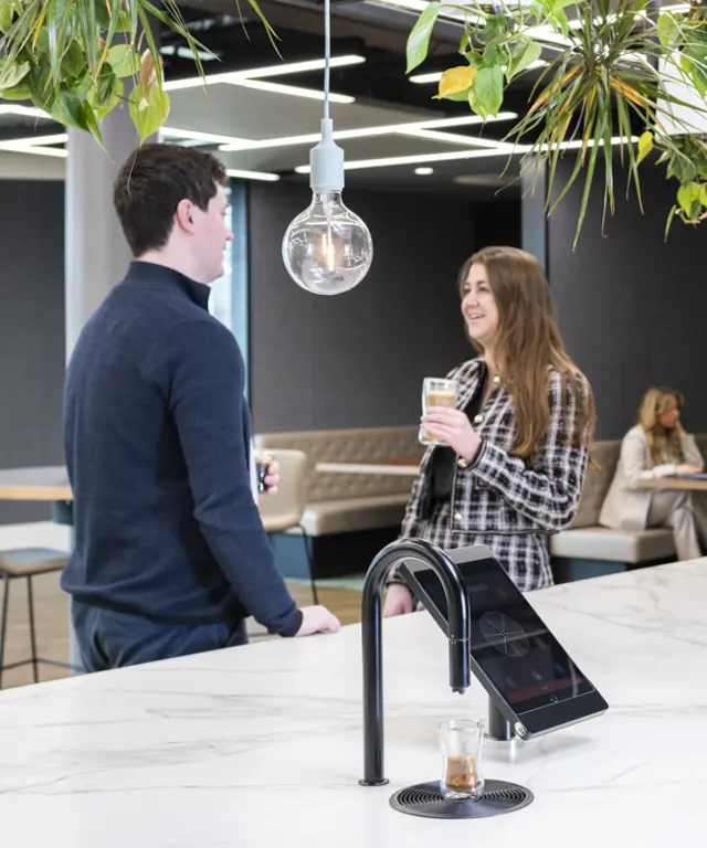 (Keep Your Employees Hydrated with TopBrewer) Discover the benefits of a streamlined commercial beverage solution - with TopBrewer you have one elegant tap for all hot and chilled drinks.