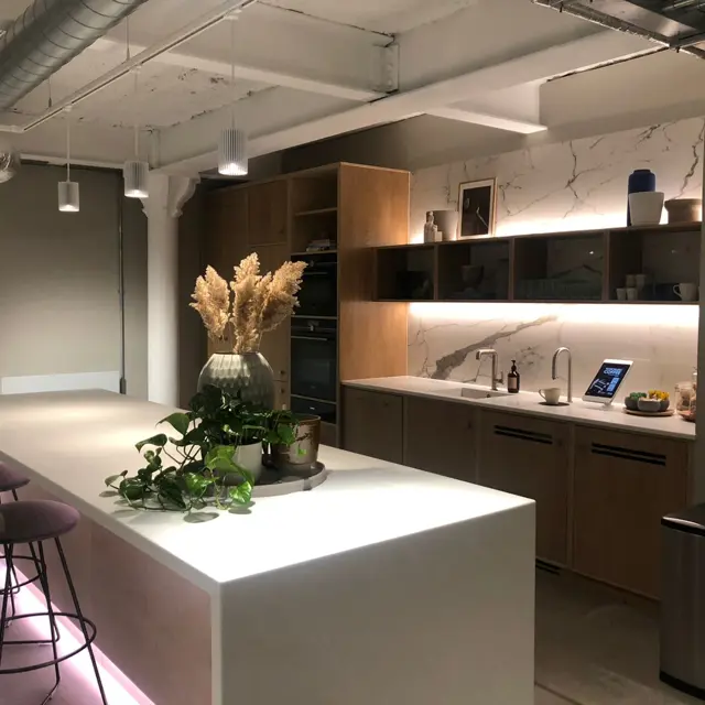 Making up the Studio’s core offering are bespoke partner PODs – created by neighbouring design and build studio, Tim Denton - and showcasing paint, tiles, flooring and wallcoverings, furniture, lighting and smart solutions, fabric, bathroom accessories, plants and acoustic panels.